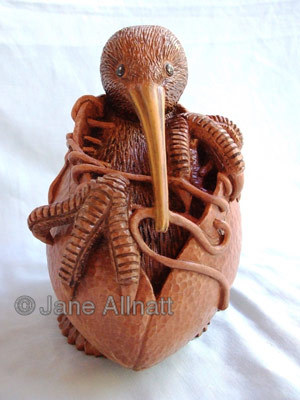 Kiwi Black (Awards, Sales gallery) 3rd in Kiwiana - Kawerau National Woodskills Festival 2009 Carved in Pohutukawa. 18 x 15 x 10 cms. $1,500. PreviousNext PreviousNext